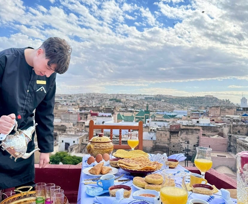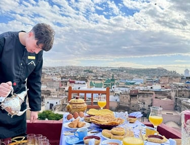 Faire de votre séjour à Fès un moment inoubliable , À travers un accueil personnalisé, une attention sincère et des services pensés avec soin comme notre délicieux petit déjeuner marocain nous voulons que chaque invité se sente chez lui, en sécurité et pleinement détendu