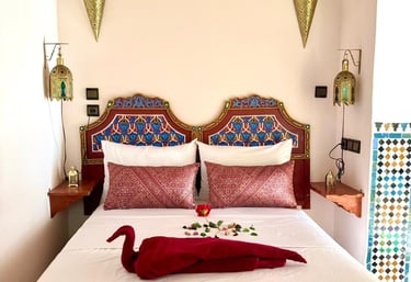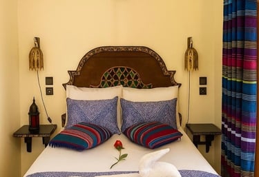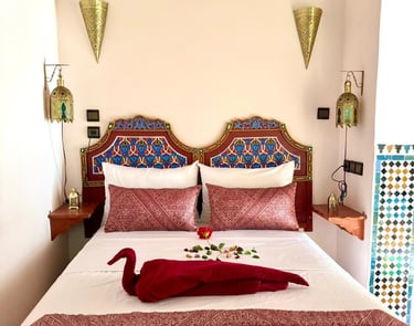 Explorez nos différentes chambres, chacune avec son ambiance unique. Confort, décoration traditionnelle et atmosphère chaleureuse au cœur de la Médina.
